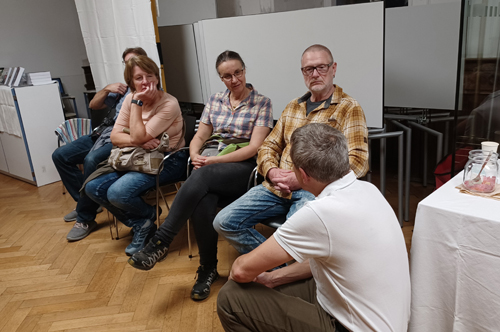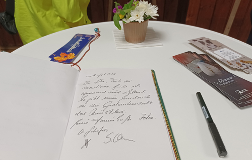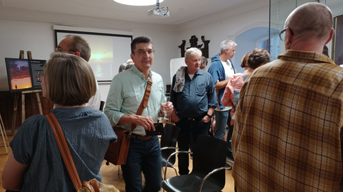 Nach vorsichtigen Schätzungen dürften so um die 600 Besucher im Rosarium gewesen sein. Die meisten haben die Ergebnisse unserer Fotochallenge nicht nur überflogen, sondern haben sie richtig auf sich wirken lassen, sich mit Fragen an uns gewandt und alle Collagen eingehend bewundert.