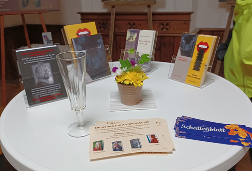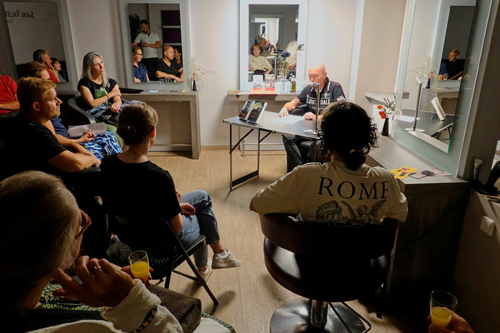 Auch beim City-Friseur Sabine Valier in der Fußgängerzone herrschte pünktlich zu den Lesungszeiten großer Andrang. Von der Hausherrin mit Gabriele und Jacqueline Wibmer perfekt organisiert, kam man hier mal in den höchst ungewöhnlichen Genuss von Lesungserlebnissen im bequemen Friseursessel.